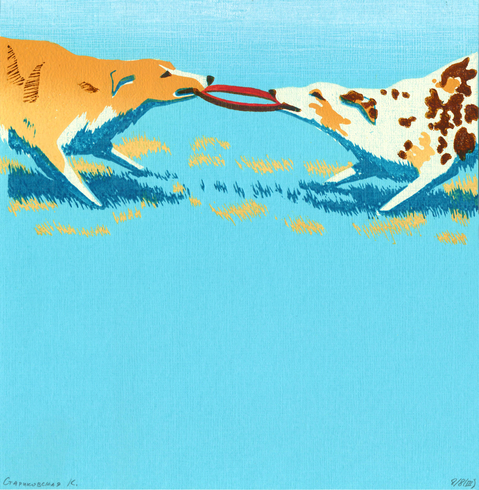 Работа выполнена в технике линогравюры, высокая печать, 8/8 (3). 4 печатные формы для этой работы вырезаны вручную из гомогенного коммерческого линолеума специализированными резцами. Каждый оттиск отпечатан автором вручную типографской краской на тонированной бумаге и иллюминирован акрилом и белым карандашом. Размер изображения и листа 200х200мм