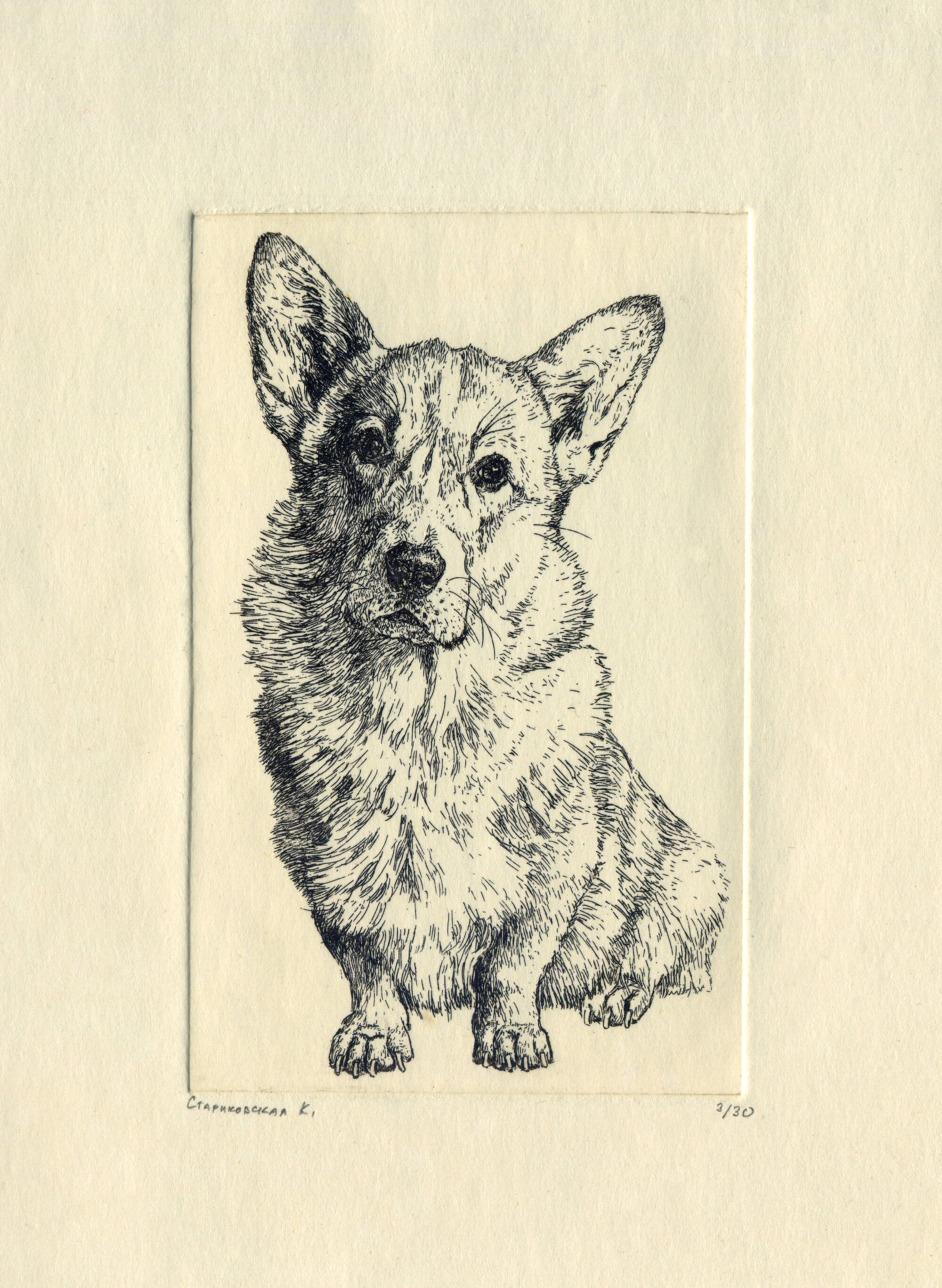 Работа выполнена в технике офорта, глубокая печать, 3/30. Печатная форма создана вручную на медной пластине путём химических травлений (техника - травлёный штрих). Каждый оттиск отпечатан автором вручную на офортном станке (валовый пресс) специализированной краской на офортной бумаге. Размер изображения 122х80мм, размер листа 184х140мм