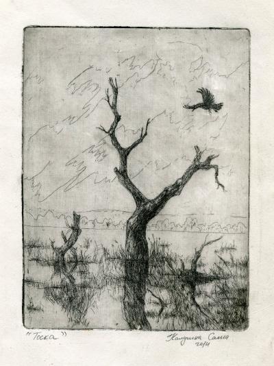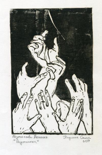 Саша Калугина – иллюстратор и художник-график широкого профиля, работает в стиле экспрессионизм. Саша занимается книжной иллюстрацией и печатной графикой (офортом, линогравюрой, монотипией), экспериментирует в станковой графике. Список тем, которые она охватывает в своем творчестве, крайне широк.